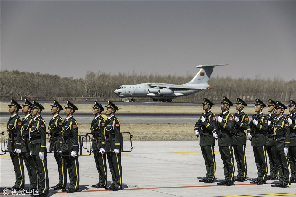2019年4月3日,第六批在韩志愿军烈士遗骸回归祖国,迎接仪式在沈阳桃仙国际机场举行。