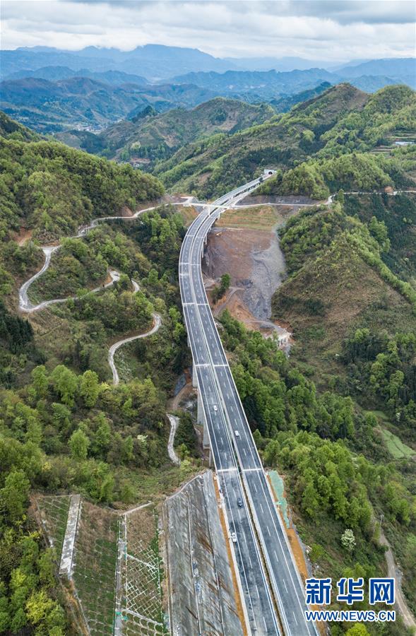 4月3日无人机拍摄的三荔高速三都西至中和路段。 新华社记者 陶亮 摄