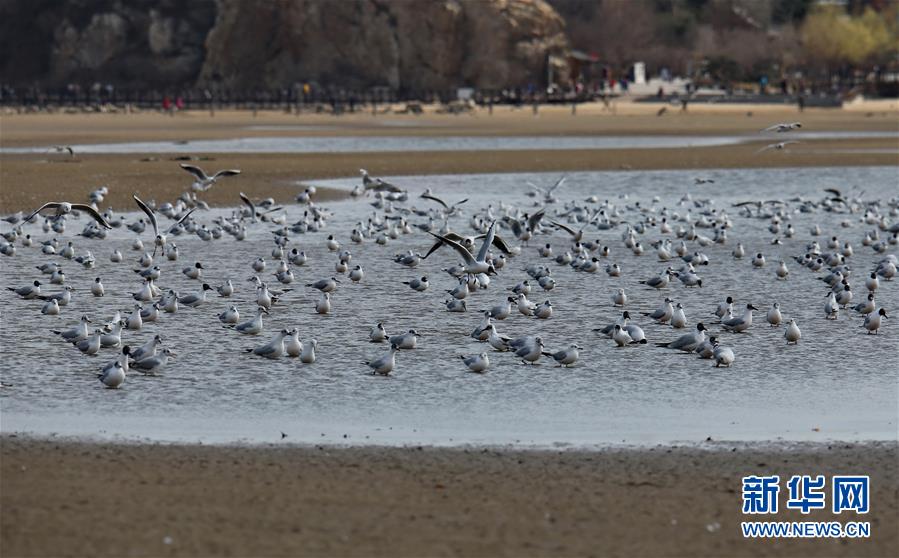 4月4日,一群候鸟在秦皇岛市沿海湿地休憩。近日,大批候鸟飞抵河北省秦皇岛市沿海湿地,出现“万鸟临海”奇观。秦皇岛沿海湿地鸟类食物丰富,每年春、秋两季,大批候鸟迁徙经过这里。新华社记者 杨世尧 摄