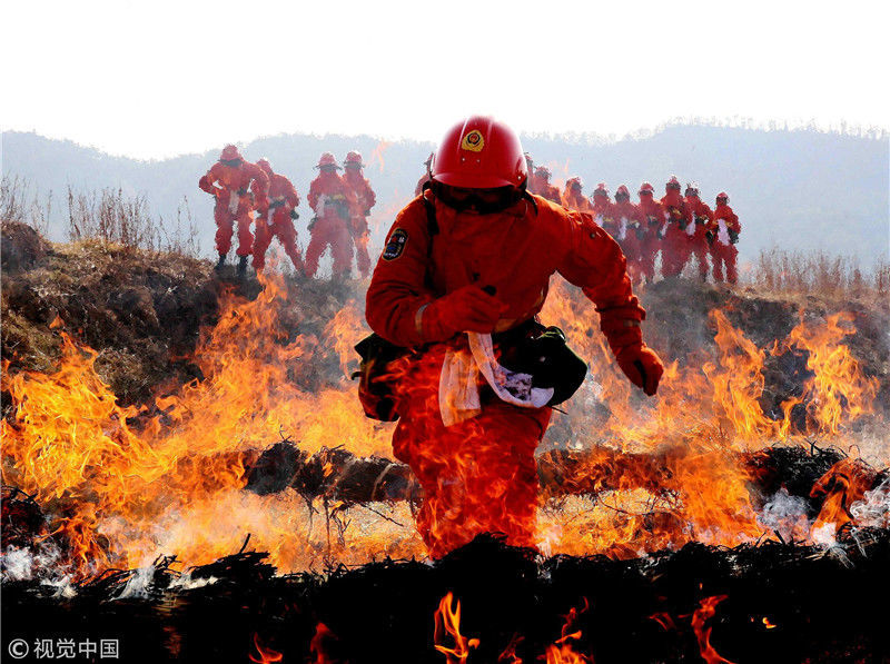 2016年2月16日,四川,侯正超组织新兵开展火场心理行为训练。