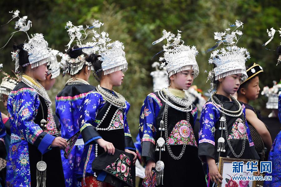 苗族女孩盛装参加“三月三”非遗手工艺展演活动(4月6日摄)。4月6日至7日,在贵州省黔东南苗族侗族自治州剑河县观么镇新民村和新合村,来自剑河县和三穗县的苗族同胞欢聚一堂,通过民族歌舞展演、非遗手工艺展示、千户祭“巫耶”、跳芦笙舞等形式,与来宾一起欢庆2019年高雍苗族“三月三”民俗文化节。 新华社记者 杨文斌 摄