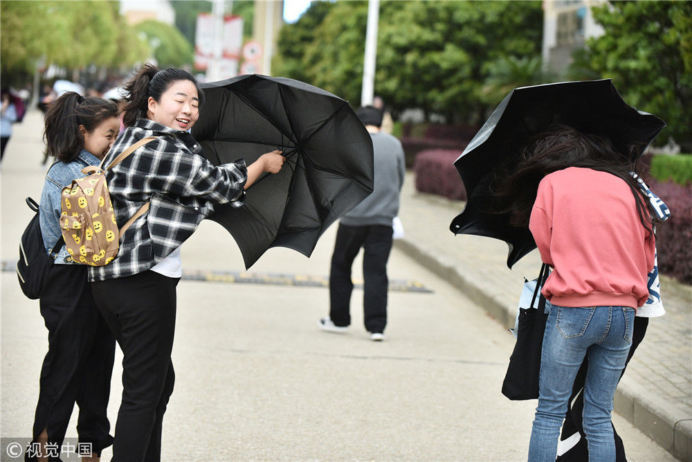 2019年4月9日,武汉天气遭遇突变 ,大风、降雨、降温齐上阵,给出行的市民带来了不便。风雨中的行人被大风吹翻了雨伞。