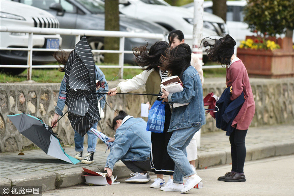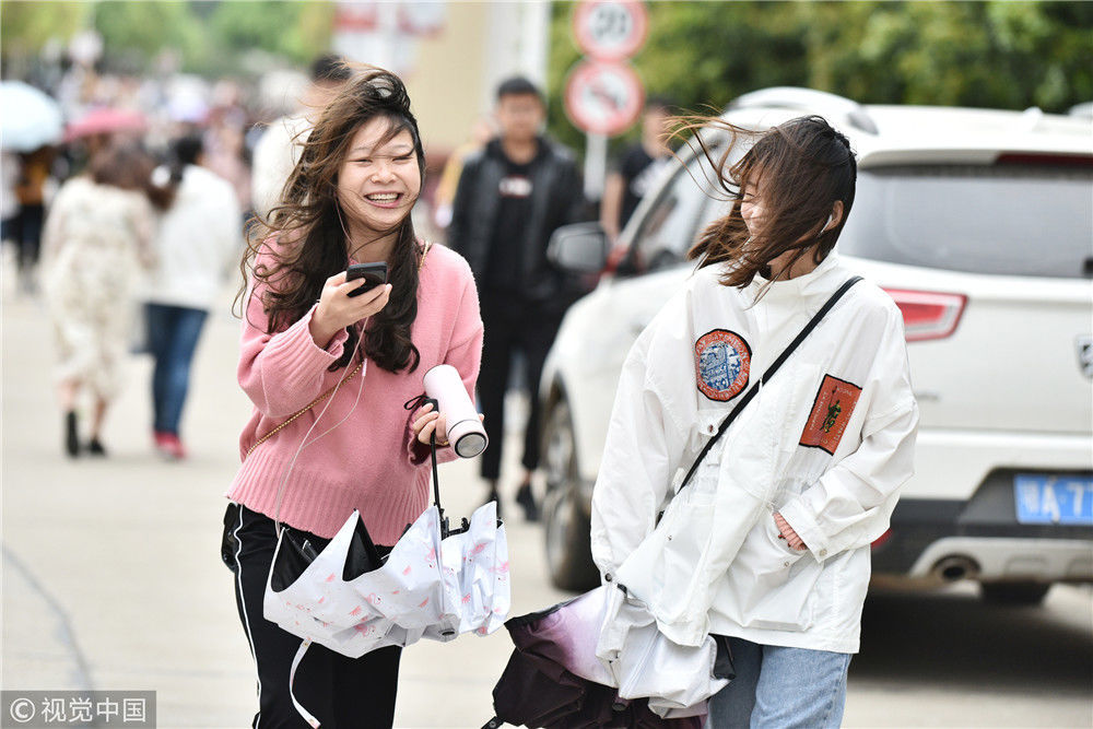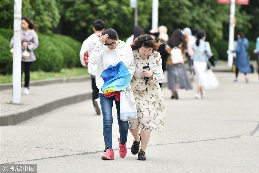 2019年4月9日,武汉天气遭遇突变 ,大风、降雨、降温齐上阵,给出行的市民带来了不便。路上的行人被大风吹乱了长发。