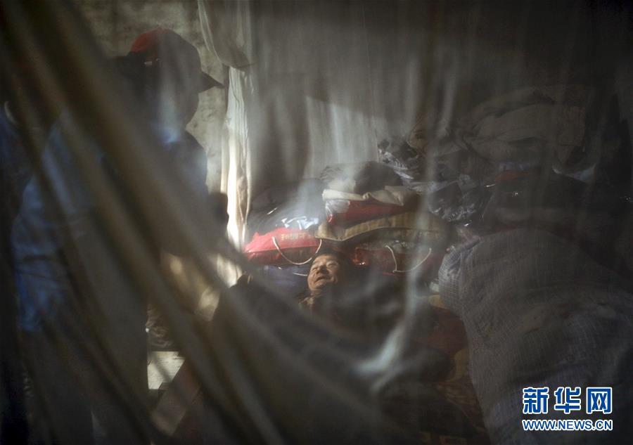 “背篓医生”在陶家镇友爱村18社五保户朱崇德家为小儿麻痹症患者朱崇德(右)进行体检(2月20日摄)。 新华社记者 兰红光 摄