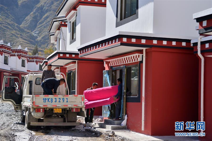 在陇南市武都区“新坪垭”,村民将山上搬下来的物品搬进新房(10月31日摄)。新华社记者 范培珅摄