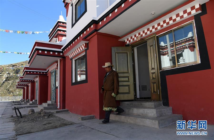 在陇南市武都区“新坪垭”,一名已搬迁入住的村民走出自家房屋(10月31日摄)。新华社记者 范培珅摄