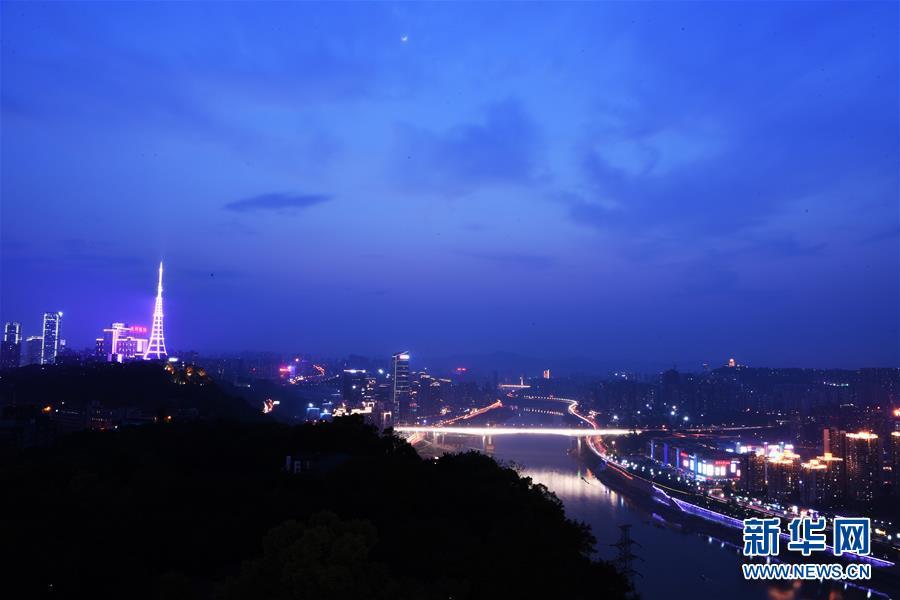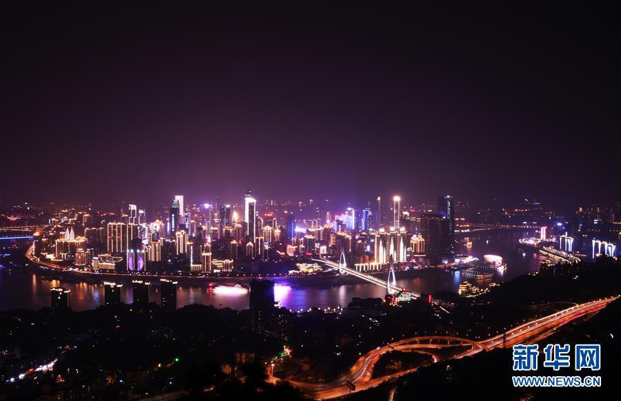 这是4月8日拍摄的重庆城市夜景。千里为重,广大为庆。城在山水间、山水在城中,重庆颇具特色的立体城市景观是城市靓丽的名片。新华社记者王全超摄