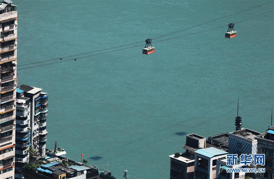 这是4月7日拍摄的重庆长江索道。千里为重,广大为庆。城在山水间、山水在城中,重庆颇具特色的立体城市景观是城市靓丽的名片。新华社记者王全超摄