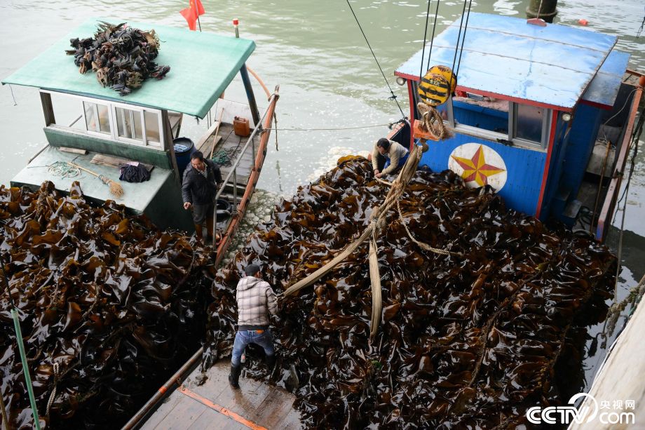 央视网消息:4月10日,福建省宁德市霞浦县养殖户抢抓晴好天气,收获海带。近日,当地30余万亩“海上牧场”进入海带收获季节。霞浦县素有“中国海带之乡”称号,海带养殖是当地民众增收致富的支柱产业。图片来源:视觉中国