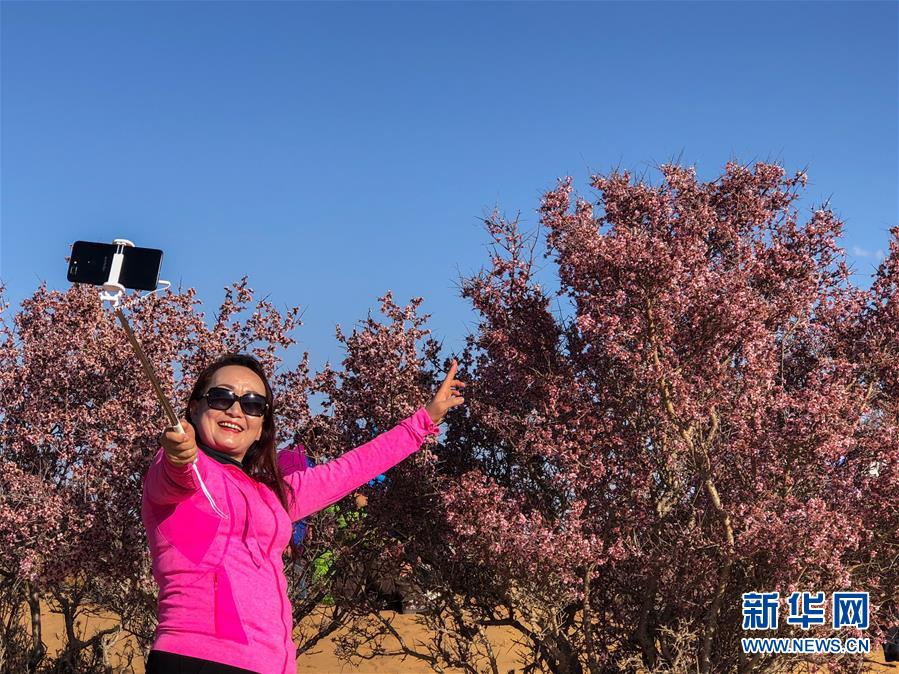 时下,在内蒙古阿拉善盟腾格里额里斯镇的沙漠腹地,近万亩的野生蒙古扁桃迎来盛花期,吸引游客前来观光。蒙古扁桃是生长于荒漠地区和荒漠草原区的旱生树种,极其珍贵稀少。近些年,当地加大退牧还草、造林绿化力度,荒漠生态环境持续好转,这片蒙古扁桃林面积逐年扩大,成为大漠里的一道亮丽风景。