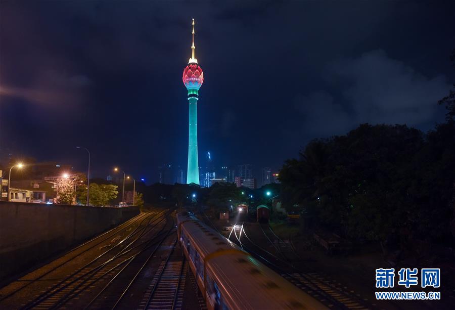 这是4月12日在斯里兰卡科伦坡拍摄的被点亮的莲花电视塔。