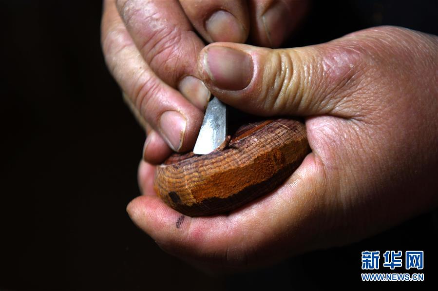 4月12日,桂雪在工作室内制作木壶。家住安徽省宣城市泾县泾川镇岩潭村的桂雪是安徽省宣城市非物质文化遗产木壶艺术的技艺传承人,一块块不起眼的木头,经过他的雕琢打磨,变身一把把古朴典雅的袖珍木壶。近10年来,桂雪潜心研究木壶工艺,逐渐摸索出自己的木壶制作技艺。桂雪说,制作一件木壶需要经过选料、制胚、掏堂、凿把、修边、琢磨、抛光等十几道工序,制作难度大,工期长。桂雪至今只做了约200把木壶。近年来,桂雪通过非遗展示、讲课交流等方式弘扬传统木壶技艺,让更多的人了解了这门手艺。新华社记者 刘军喜 摄