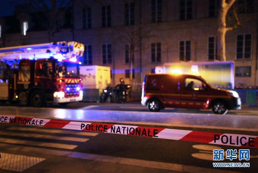 4月15日,在法国巴黎,消防车聚集在巴黎圣母院周围。新华社记者 高静 摄