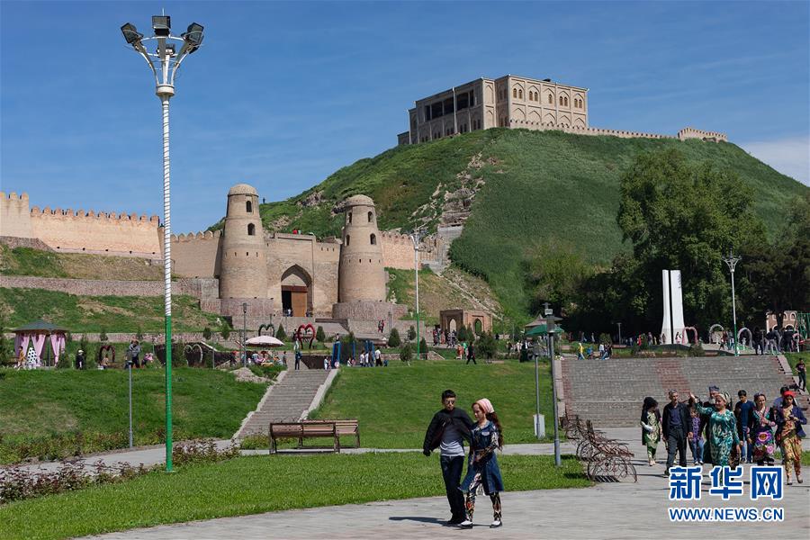 4月14日,人们在塔吉克斯坦首都杜尚别以西的吉萨尔城堡参观。新华社记者白雪骐摄