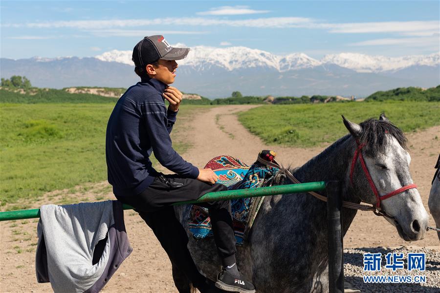 4月14日,在塔吉克斯坦首都杜尚别以西的吉萨尔城堡,一名男子招揽顾客。新华社记者白雪骐摄