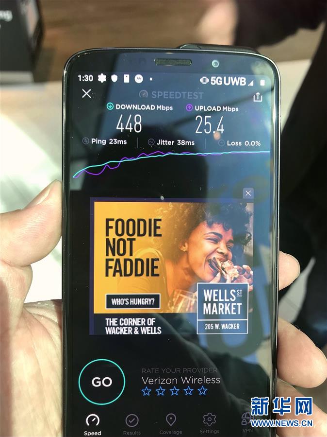 这是4月8日在美国芝加哥拍摄的5G手机网络测试画面。