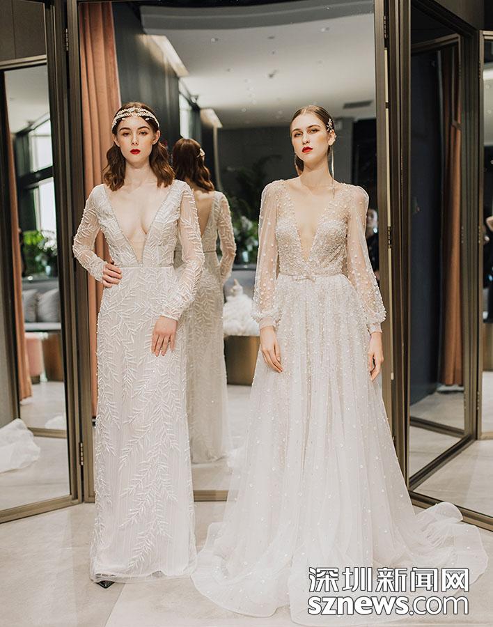 本次品鉴沙龙还展示了5个ISA代理的精华品牌:黎巴嫩世袭高级定制Tony Ward、台湾创造性奢华品牌Kathy Lawrence、罗马尼亚高级定制品牌Otilia Brailoiu、以色列婚纱领军品牌Julie Vino、东欧贵族婚纱品牌Ersa Atelier的最新婚纱产品,配合品牌当季大片布置5个不同的视觉环境,于5个不同的婚纱体验间呈现。到场的宾客杯酒言欢,欣喜试纱之余,无不对本次活动举办地点——新衣纱旗舰店赞叹不已。