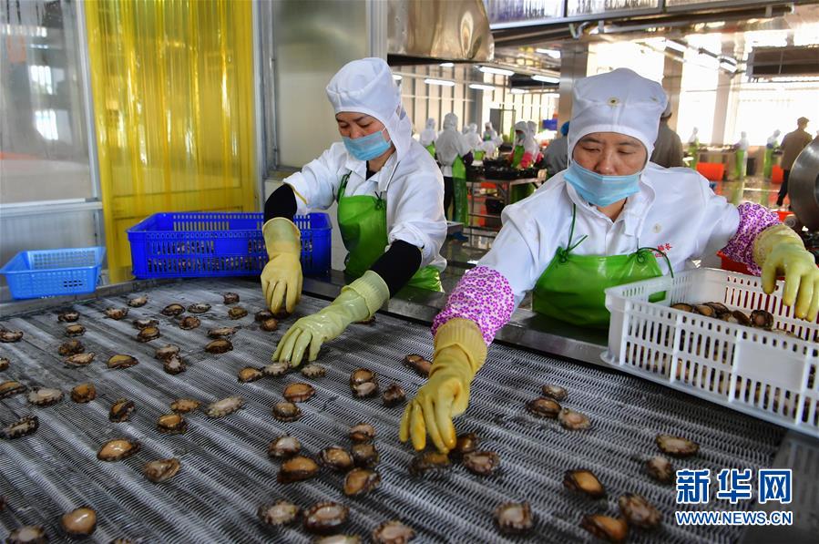 4月18日,工人在连江县筱埕镇一家鲍鱼出口加工企业加工鲍鱼。