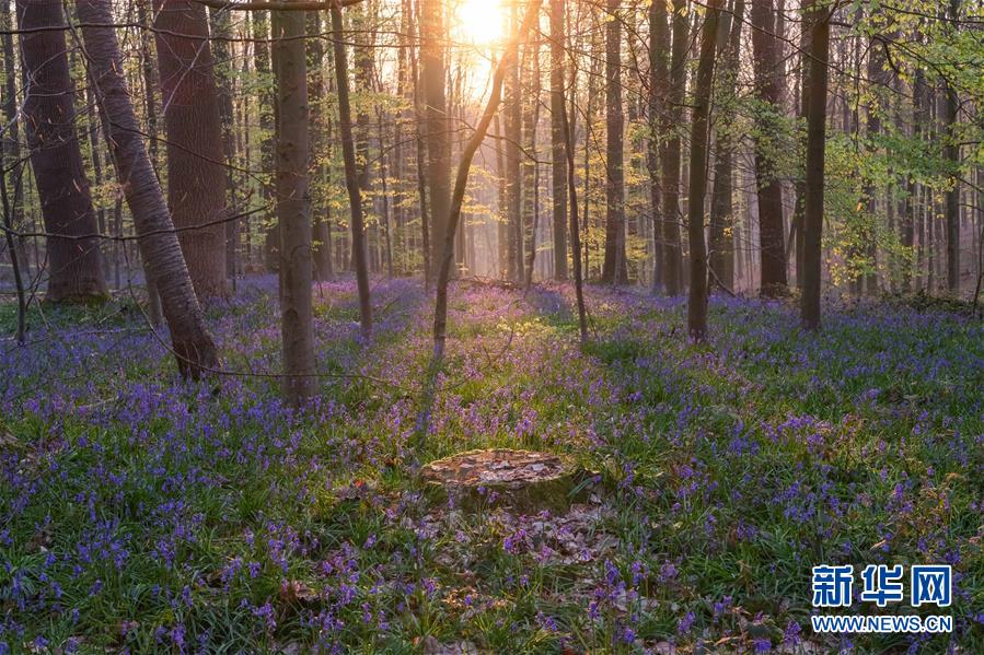 这是4月18日在比利时布鲁塞尔南郊哈勒森林拍摄的蓝铃花。随着大片蓝铃花盛开,位于比利时布鲁塞尔以南20公里处的哈勒森林充满了紫色的梦幻气息,又被称作“紫花森林”。新华社记者 张铖 摄