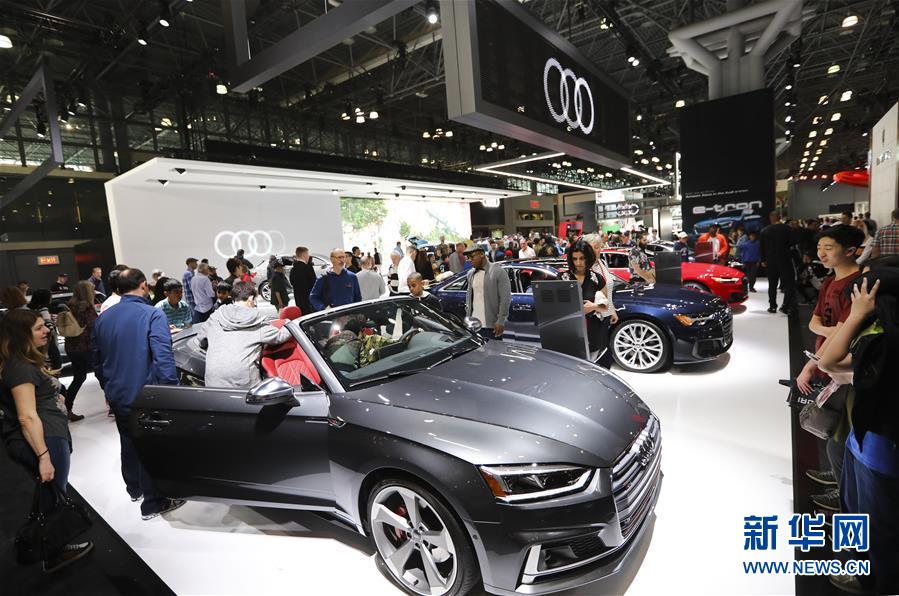 4月19日,在美国纽约举行的2019纽约国际车展上,参观者观看奥迪轿车。 2019纽约国际车展4月19日起正式对公众开放,将持续至28日。本届展会展出近千款各大厂商生产的最新车型,预计将吸引超过100万参观者。 新华社记者 王迎 摄