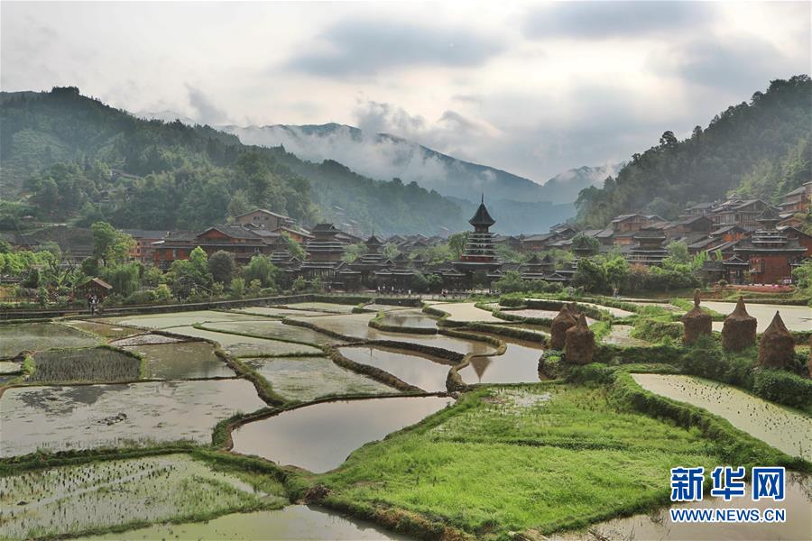 谷雨时节,贵州省黔东南苗族侗族自治州黎平县肇兴侗寨云蒸雾绕,美景如画。