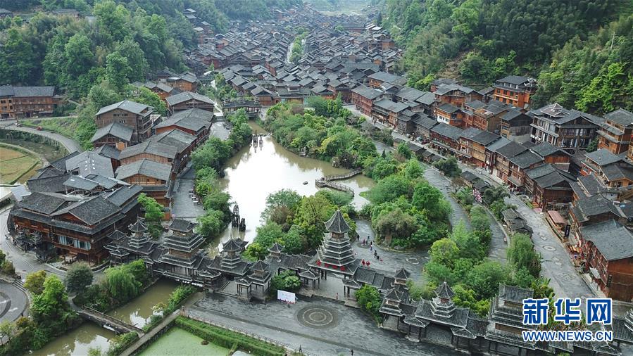 这是4月14日无人机拍摄的肇兴侗寨。谷雨将至,贵州省黔东南苗族侗族自治州黎平县肇兴侗寨处处春意盎然。 新华社记者欧东衢摄