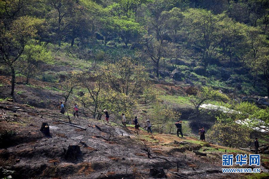 2013年3月5日,村民在山上开荒,准备种植果树。新华社记者 黄孝邦 摄