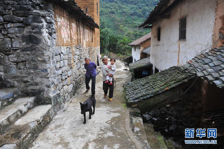 记者第一次去铜板屯采访时,村里只有两位老人和1个小孩在家,另外几个老人到乡里赶集(2012年10月21日摄)。新华社记者 黄孝邦 摄