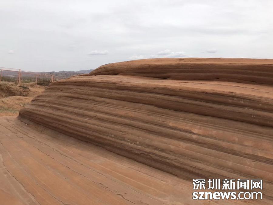 沙丘不断地被一层层浸渍了地下水的红沙所覆盖,天长日久,水中的矿物质把沙凝结成了砂岩,形成了层叠状的结构。孙卫南摄