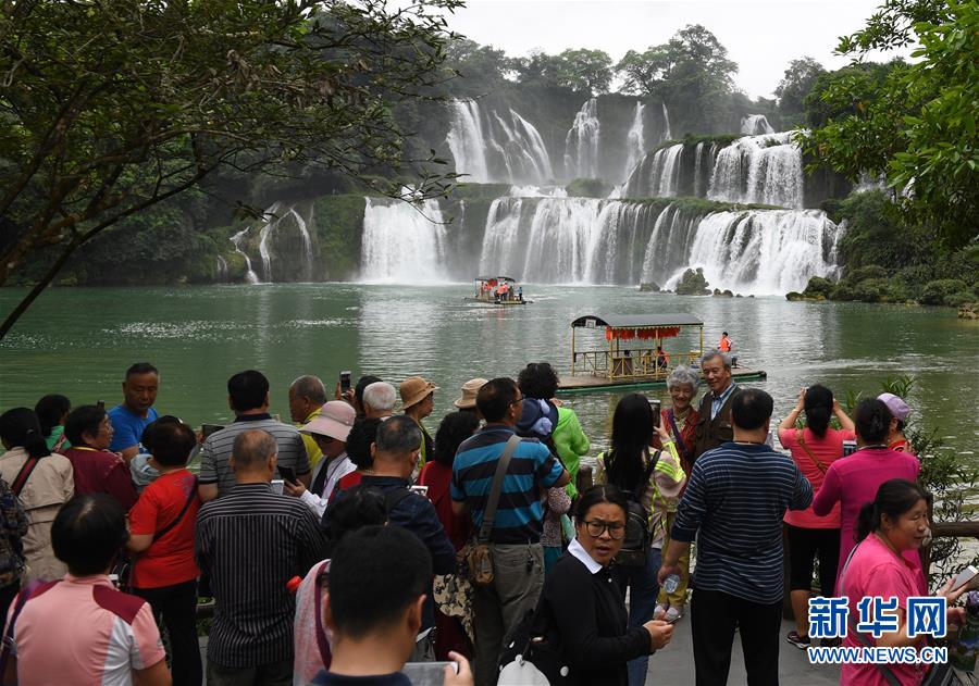 游客在广西大新县德天瀑布景区观光(4月17日摄)。 新华社记者 陆波岸 摄
