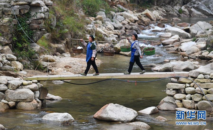 在黔桂乌英苗寨,村民劳作归来(3月25日摄)。 新华社记者 黄孝邦 摄