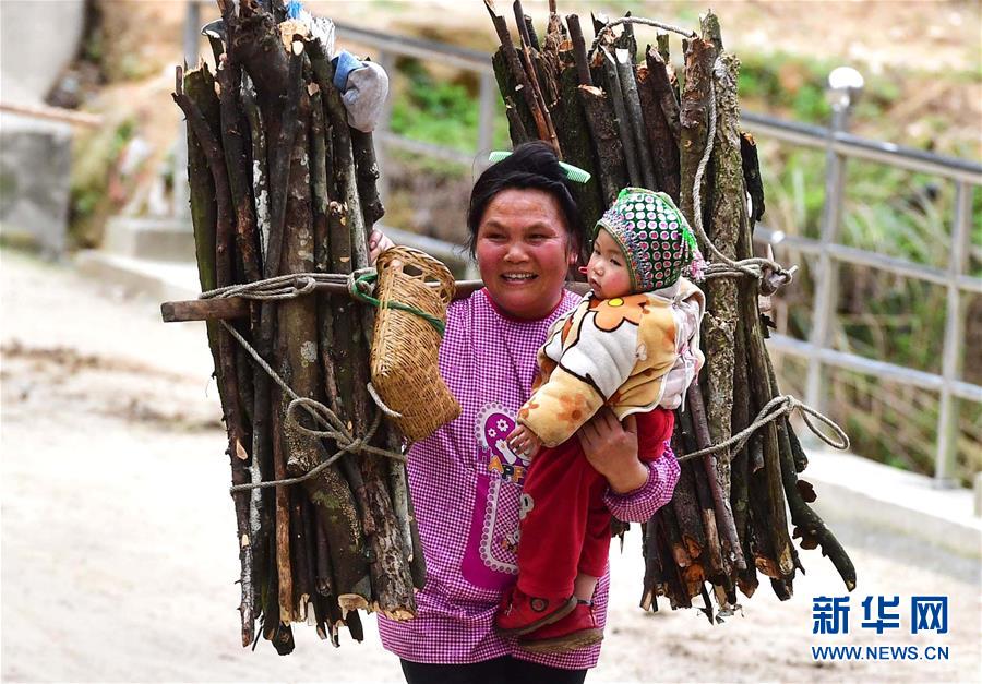 在黔桂乌英苗寨,村民劳作归来(3月18日摄)。 新华社记者 黄孝邦 摄