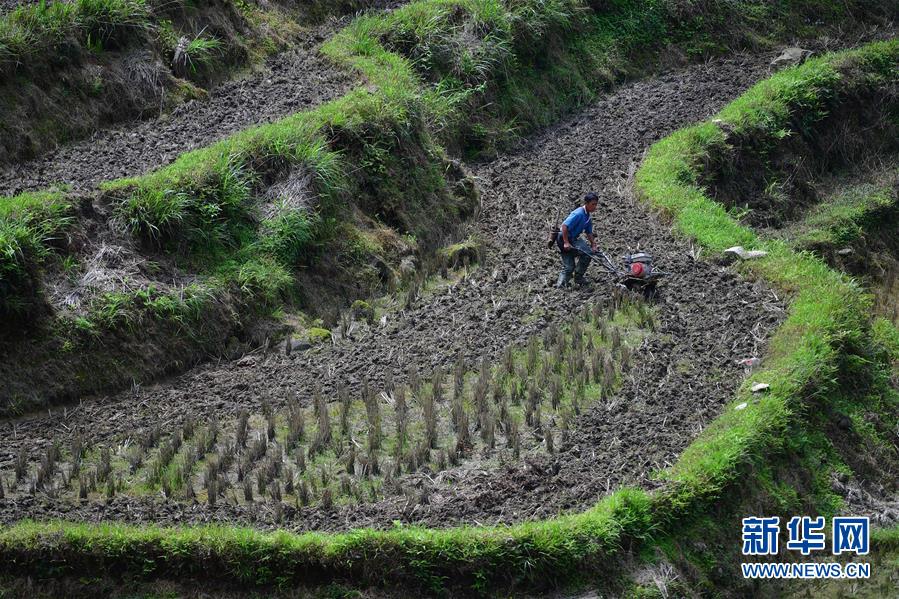 在黔桂乌英苗寨,村民在田间劳作(4月26日摄)。 新华社记者 黄孝邦 摄
