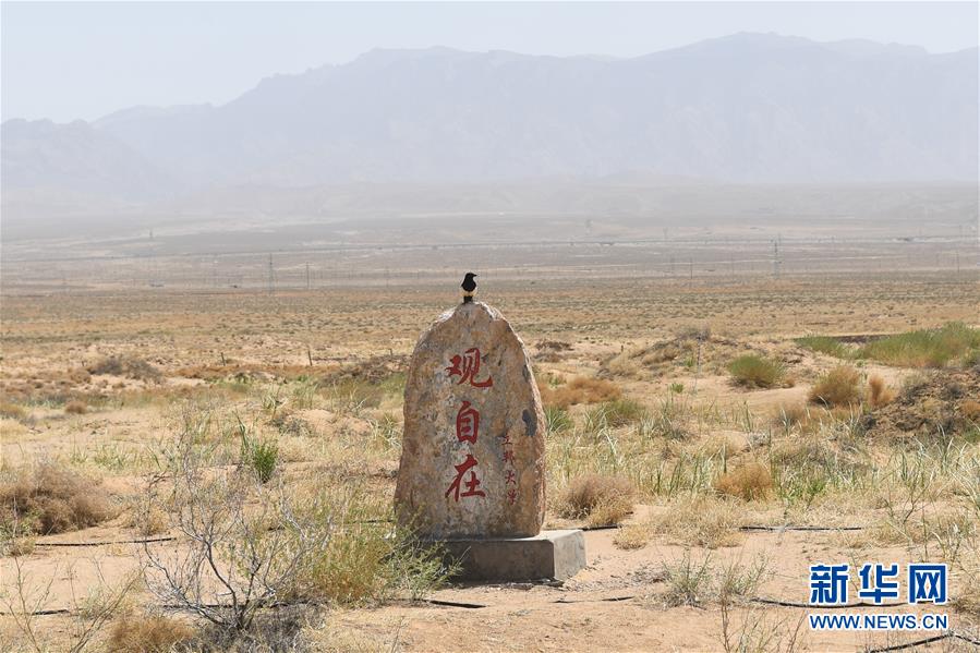 这是腾格里沙漠东缘的生态恢复区,远处便是贺兰山(5月1日摄)。新华社记者 刘磊 摄