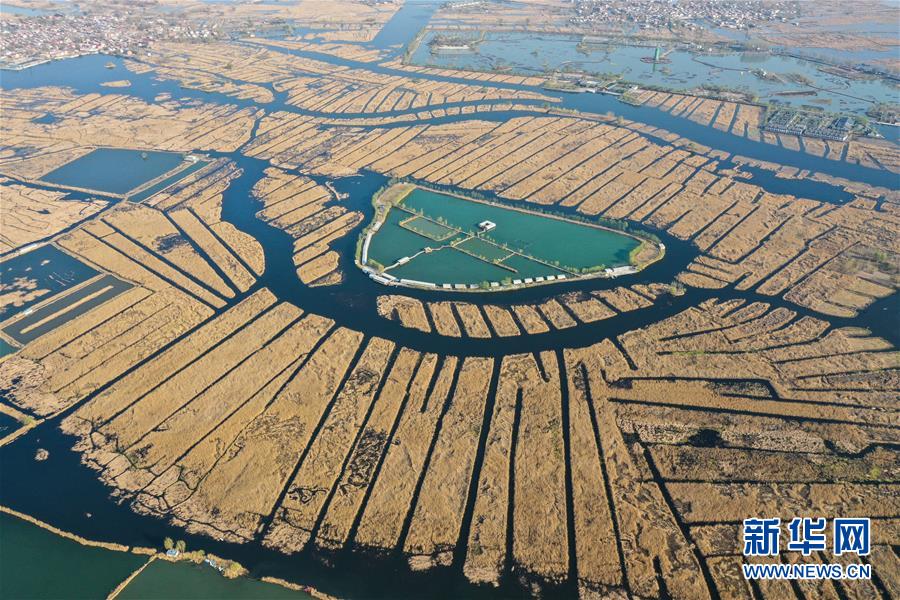 3月31日无人机拍摄的雄安新区白洋淀。新华社记者邢广利摄