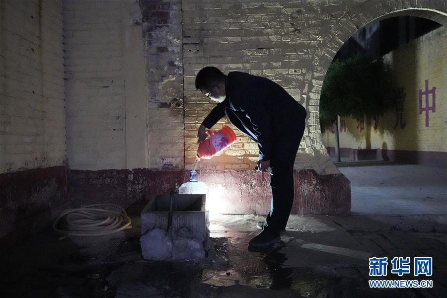 鲁昊在深夜打水(4月30日摄)。 新华社记者 邢广利 摄