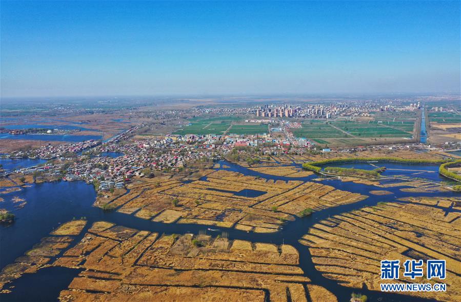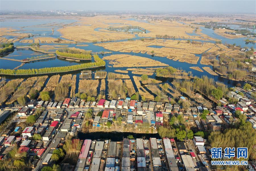 3月31日无人机拍摄的雄安新区白洋淀。新华社记者王晓摄