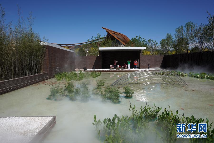 游客在北京世园会天津园内参观(5月5日摄)。新华社记者 鞠焕宗 摄