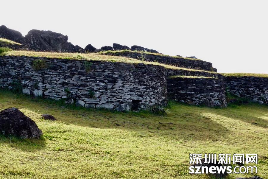 火山口边沿有古代土著波利尼西亚人轮流值守家园的石砌地堡,他们当时在此守望什么,防止入侵者亦或试图发现新的岛屿?这是至今未解之谜。李仁奇 摄