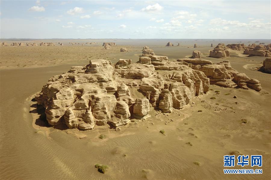 这是5月8日无人机拍摄的敦煌雅丹国家地质公园雨后景色。 近日,甘肃敦煌迎来降雨天气,雨后的敦煌雅丹国家地质公园显得更加雄壮美丽。 新华社记者 范培珅 摄
