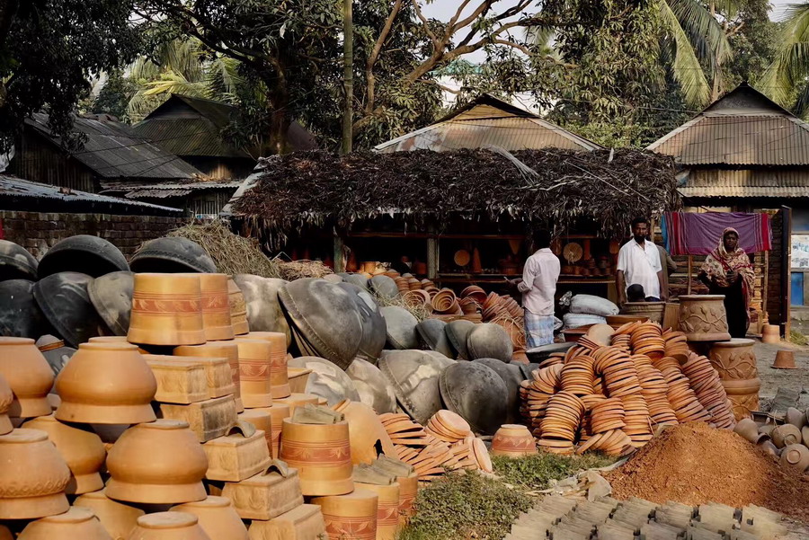 达卡远郊区一个印度教徒聚居的村庄,几乎家家户户都开办制陶作坊,以传统工艺制作陶盆、陶罐、陶盘和建筑装饰陶器,远销孟加拉国内各地。李仁奇 摄