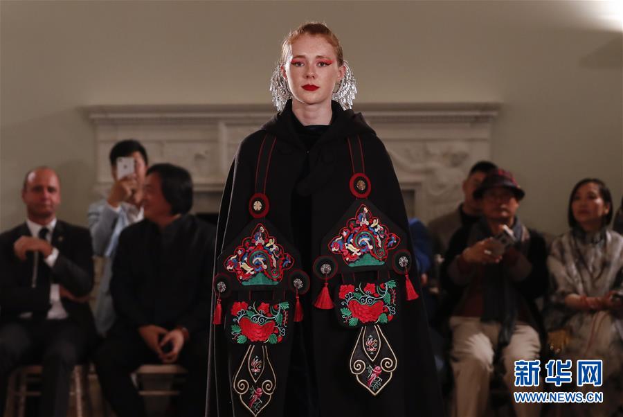 5月8日,一名模特在英国伦敦走秀。 由浙江省文化和旅游厅举办的浙江传统工艺创新展8日在伦敦开幕。为期4天的展览是第五届伦敦手工艺周的重要活动之一。 新华社记者 韩岩 摄