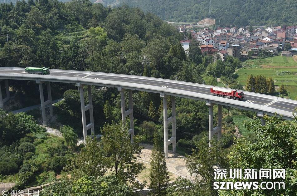 近日,连接富阳山区湖源乡的横槎大桥建成通车。昔日湖源乡通往外界的是一条盘山公路,道路狭窄,极易发生交通事故。横槎大桥全长367.4米,共18跨,桥面宽12米,桥墩高30米,相当于近10层楼高,是在险峻的山岙里建成的。大桥的通车,将彻底改变湖源乡通往外界的道路,也为山区农民拓宽了一条通往外界的致富路。