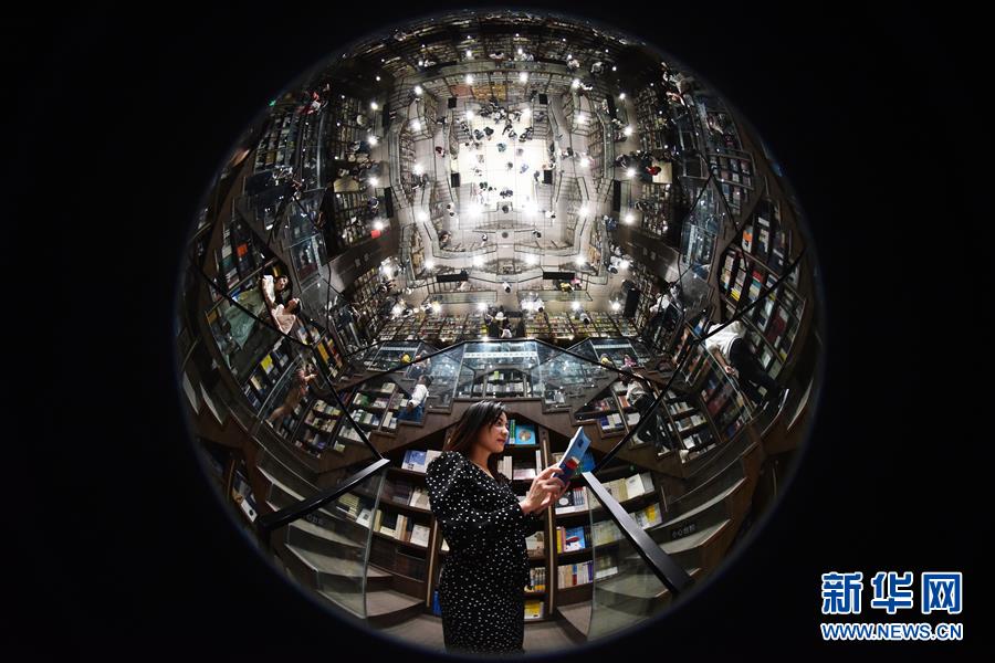 5月3日,读者在位于重庆市九龙坡区杨家坪的钟书阁书店内阅读、选购书籍(鱼眼镜头拍摄)。