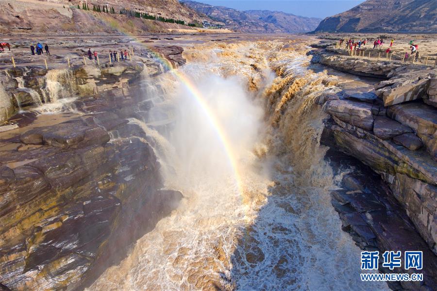 这是2018年3月22日无人机拍摄的山西吉县黄河壶口瀑布。新华社记者 曹阳 摄
