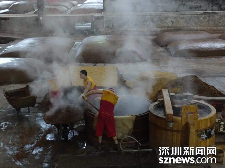 泸州老窖酒是以泥窖为发酵容器,中高温曲为产酒、生香剂,高梁等粮谷为酿酒原料,开放式操作生产,多菌密闭共酵,续糟配料循环,常压固态甑桶蒸馏、精心陈酿勾兑等工艺酿制的白酒,以己酸乙醇为主体香味物质。“泸州老窖酒传统酿造技艺”由大曲制造、原酒酿造、原酒陈酿、勾兑尝评等多方面的技艺。李仁奇 摄