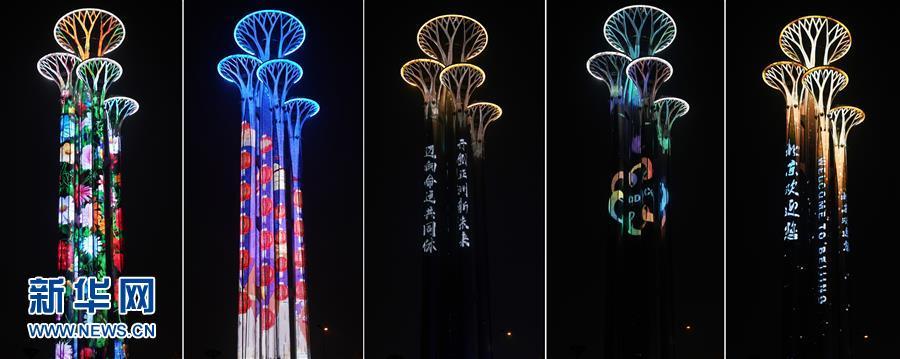 奥林匹克塔灯光璀璨(5月14日摄)。 当晚,一场“空间光影秀”在北京上演。 新华社记者 李贺 摄