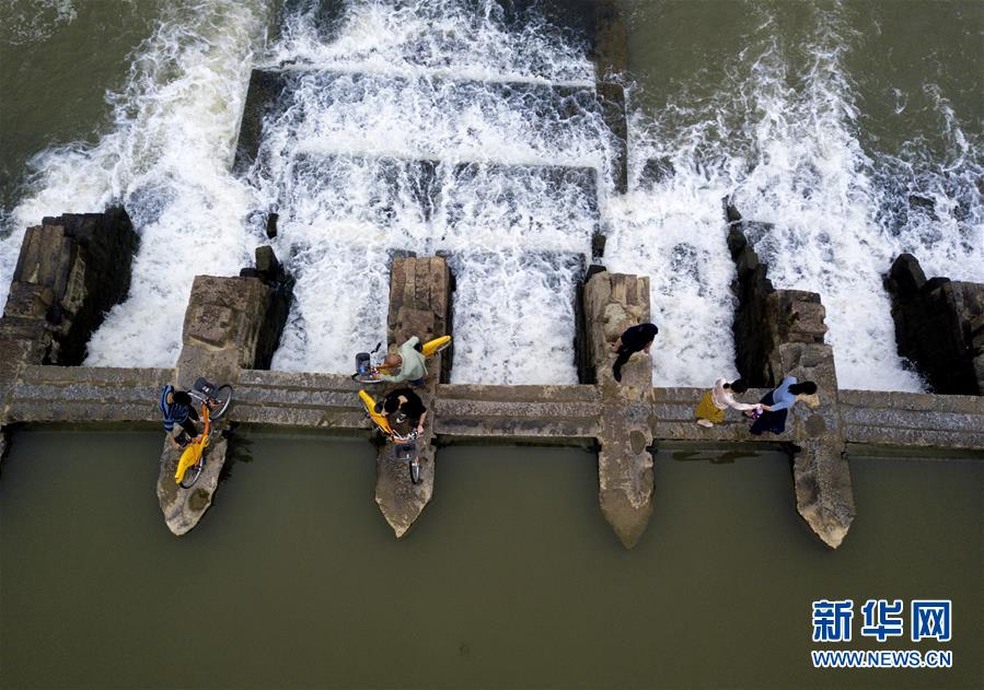 5月15日,行人通过木兰陂拦河坝(无人机拍摄)。 位于福建省莆田市城厢区的木兰陂始建于1064年,作为我国现存最完整的古代灌溉工程之一,木兰陂被誉为福建的“都江堰”。 历经后世修整,木兰陂至今仍发挥着引水、蓄水、灌溉、防洪、挡潮、水运等综合功能。2014年,木兰陂水利灌溉工程被列入首批世界灌溉工程遗产名录。 新华社记者 魏培全 摄