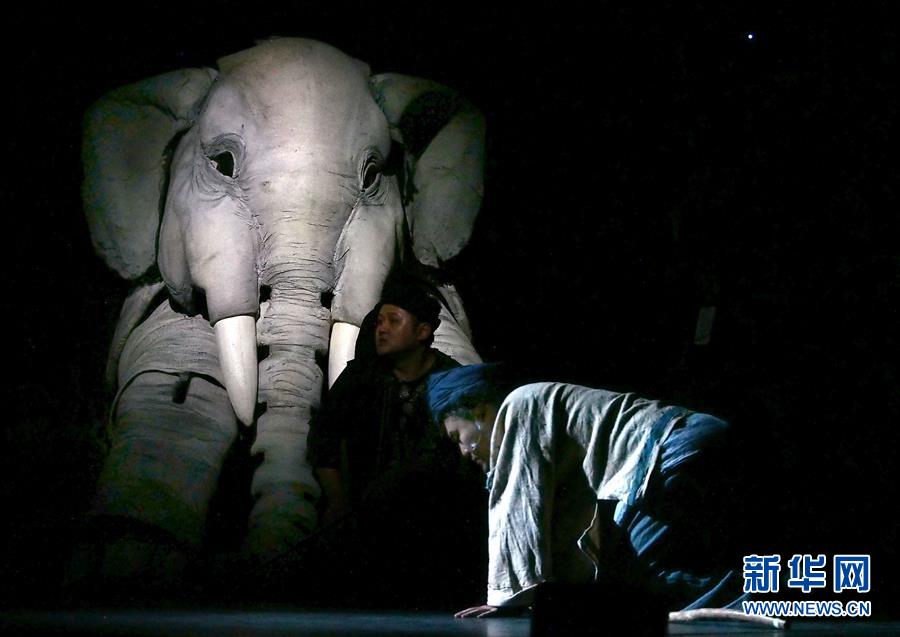 5月15日在上海美琪大戏院拍摄的新版大型人偶舞台剧《最后一头战象》剧照。 当日,作为第12届中国艺术节的参演剧目,大型人偶舞台剧《最后一头战象》在经过4次硬件技术升级和故事修改后亮相上海美琪大戏院。 新华社记者 任珑 摄