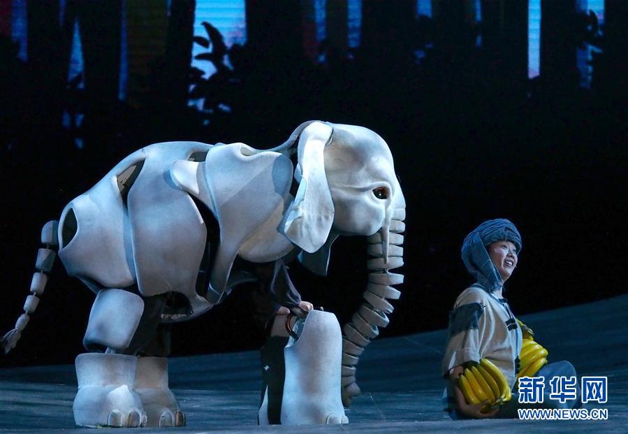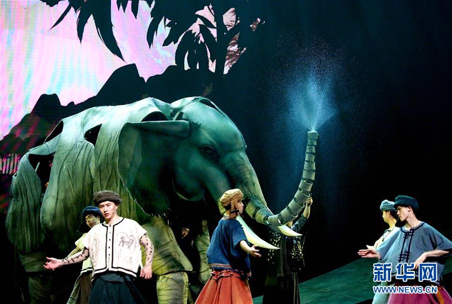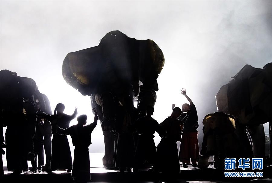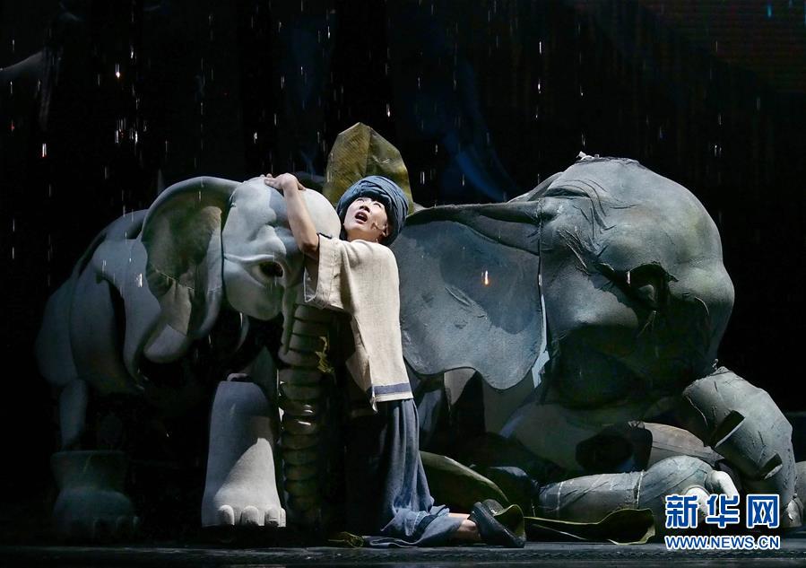 5月15日在上海美琪大戏院拍摄的新版大型人偶舞台剧《最后一头战象》剧照。 当日,作为第12届中国艺术节的参演剧目,大型人偶舞台剧《最后一头战象》在经过4次硬件技术升级和故事修改后亮相上海美琪大戏院。 新华社记者 任珑 摄